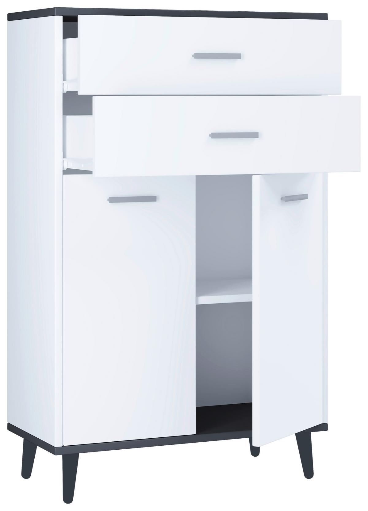 Kommode Landos , 60/97/28 cm, 2 Schublade(n) Anthrazit, Weiss Holzwerkstoff Breite/Höhe/Tiefe: 60/97/28 cm ONLINE DIRECT Dieser Artikel wird in unseren Filialen nicht ausgestellt, ist dort jedoch einfach und bequem bestellbar und wird direkt zu Ihnen nach Hause geliefert.
