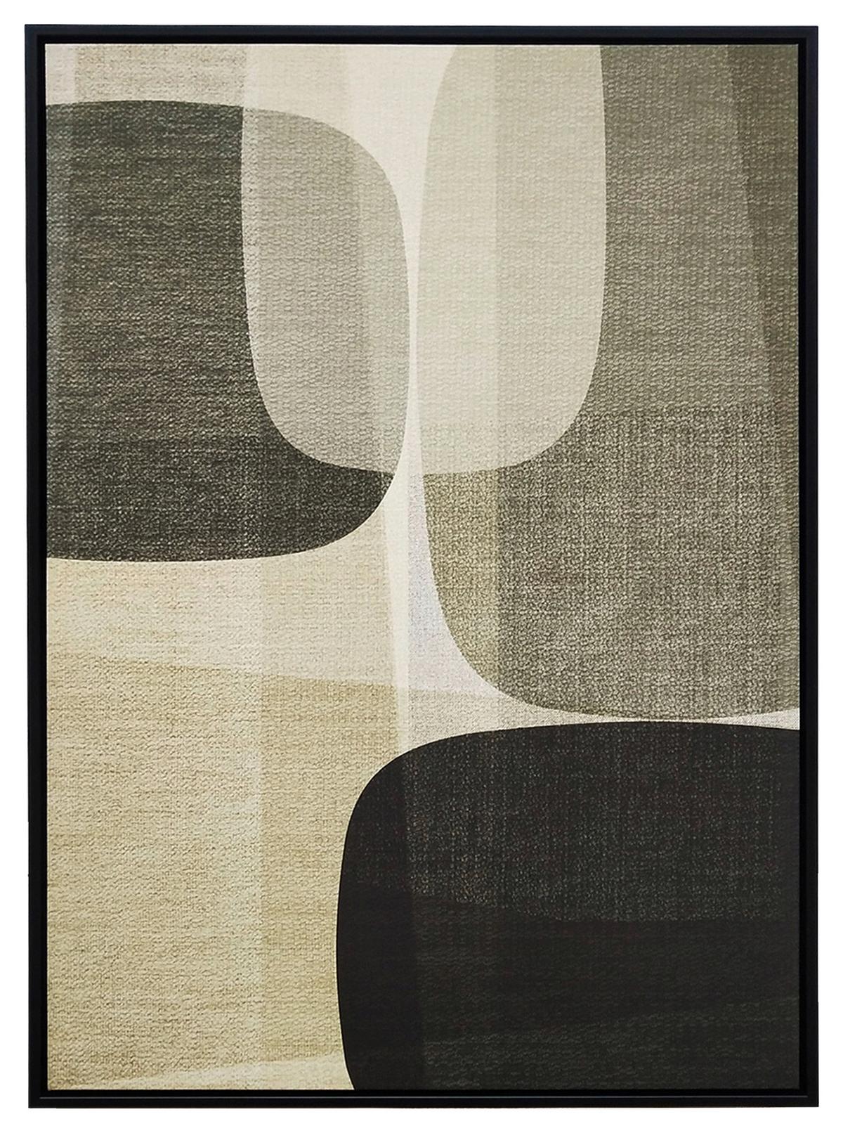 Verleihen Sie Ihrem Zuhause einen individuellen Touch mit diesem extravaganten Keilrahmenbild mit einem ansprechenden abstrakten Motiv. Das Bild aus Canvas und Kunststoff mit einem ca. 3,5 cm breiten Rahmen aus massivem Holz sorgt mit seiner harmonischen Farbgebung in Grün, Beige und Schwarz für ein Ambiente zum Wohlfühlen.